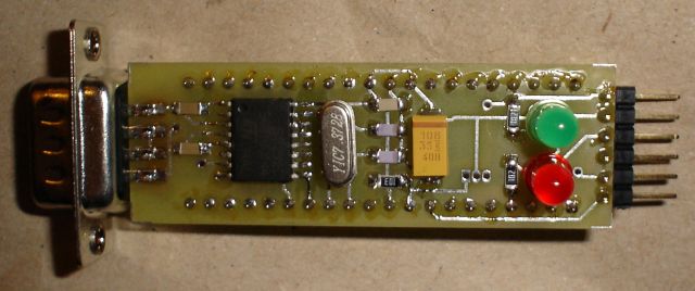 Regebben egy masik bootloaderrel probalkoztam. Az AVRPROG nalam felismerte, de az ATmega16-ba nem toltotte be a firnwaret. Ezert egy Serial Monitorral lementettem a komunikaciot, es egy script segitsegevel raw, majd Intel hex filet csinaltam belole, es manualisan toltottem fel az elobb is hasznalt kabellel. A programozashoz a ponyprog programot hasznaltam.